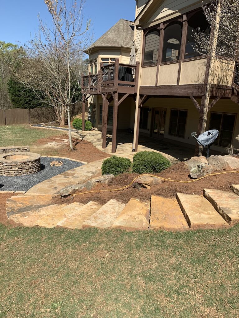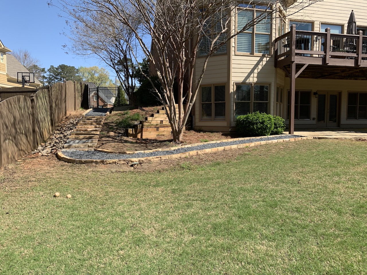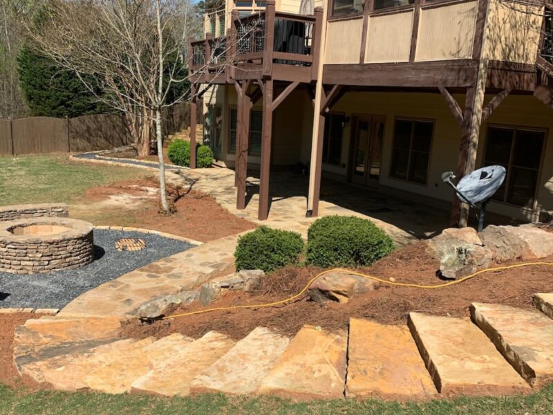 Georgia is famous for its hills, and this property had a steep descent from the driveway to the backyard fire pit. The homeowner wanted a path that felt “solid” and wouldn’t wash away during Atlanta’s heavy rains.